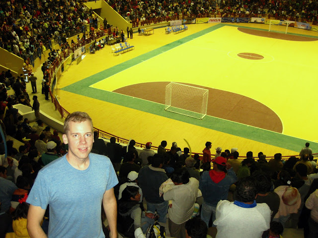 The final fútsal match was a gold-medal matchup between the Colombian and Bolivian men’s teams. Bolivian fans were so enthused by this opportunity to see their team off as champions that the coliseum was full well over two hours before kickoff. And by full, I mean, completely, absolutely, positively, PACKED. There is only bench seating inside, so everyone was shoulder to shoulder with the person next to them. At one point I got up to go to the restroom, and realized that the aisles had now disappeared. Fans had mistaken them for seats. So much for crowd control! Bolivia ended up losing the match, but I have to admit I was more than a little relieved to get out of that overcrowded disaster-waiting-to-happen.